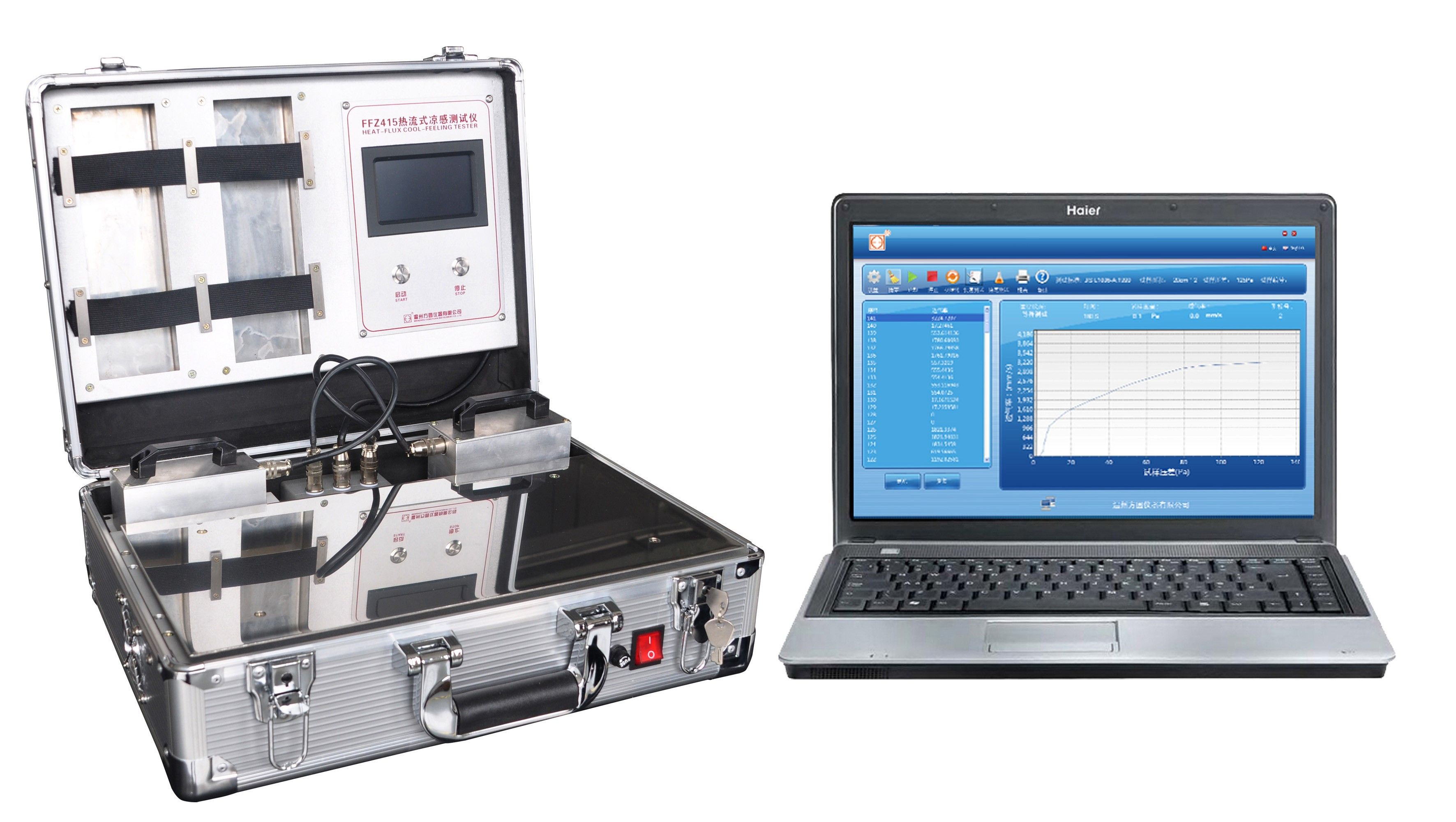 涼感制品越來(lái)越多,其質(zhì)量檢測(cè)刻不容緩。我公司根據(jù)CN201510574661.X-熱流式織物涼感測(cè)試設(shè)備及測(cè)試方法,自主研發(fā)的FFZ415熱流式?jīng)龈袦y(cè)試儀,可對(duì)織物接觸瞬間涼感Qmax值進(jìn)行測(cè)試,又可對(duì)織物持續(xù)散熱值進(jìn)行測(cè)量。反映各類(lèi)涼感材料綜合的散熱性能。